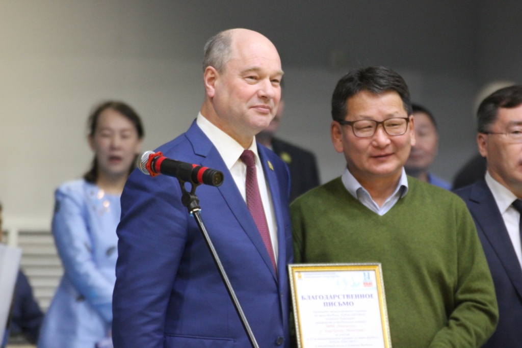 Почетные гости турнира из Монголии и Китая - начальник Управления спорта Китайской Народной Республики Тенг Ан Чжун, заслуженный судья по футболу Китайской Народной Республики Лу Сяо Мин, директор спортивного центра по футболу Управления физической культуры и спорта города Хух-Хото Лю Юн, начальник отделения Управления физической культуры и спорта города Хух-Хото Дун Жуй, начальник Управления физической культуры и спорта города Маньчжурия – Сю Вэй, тренер национальной сборной команды Монголии г-н Эрдэнэ-Очир и президент футбольного клуба «Дэрэн» господин Монхчулуун.